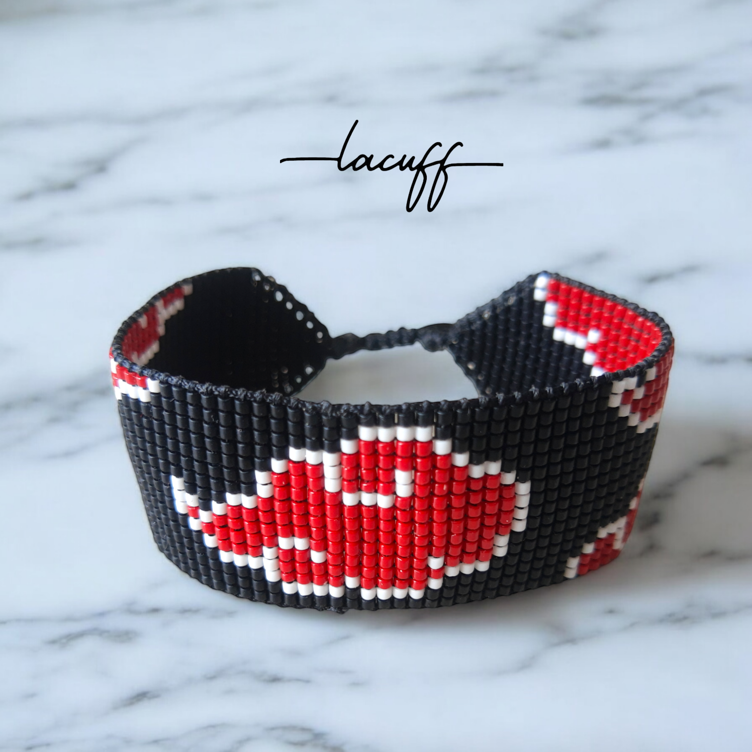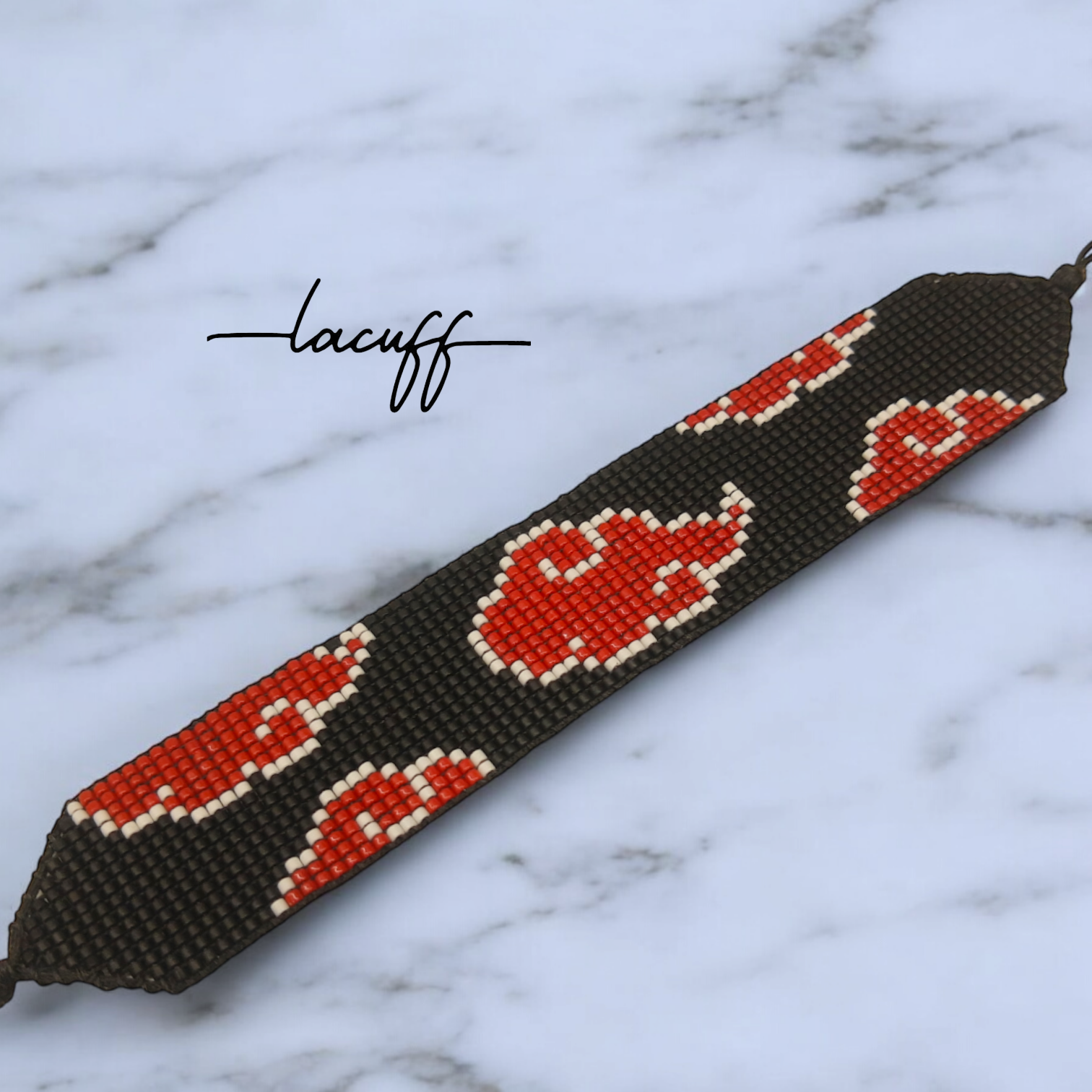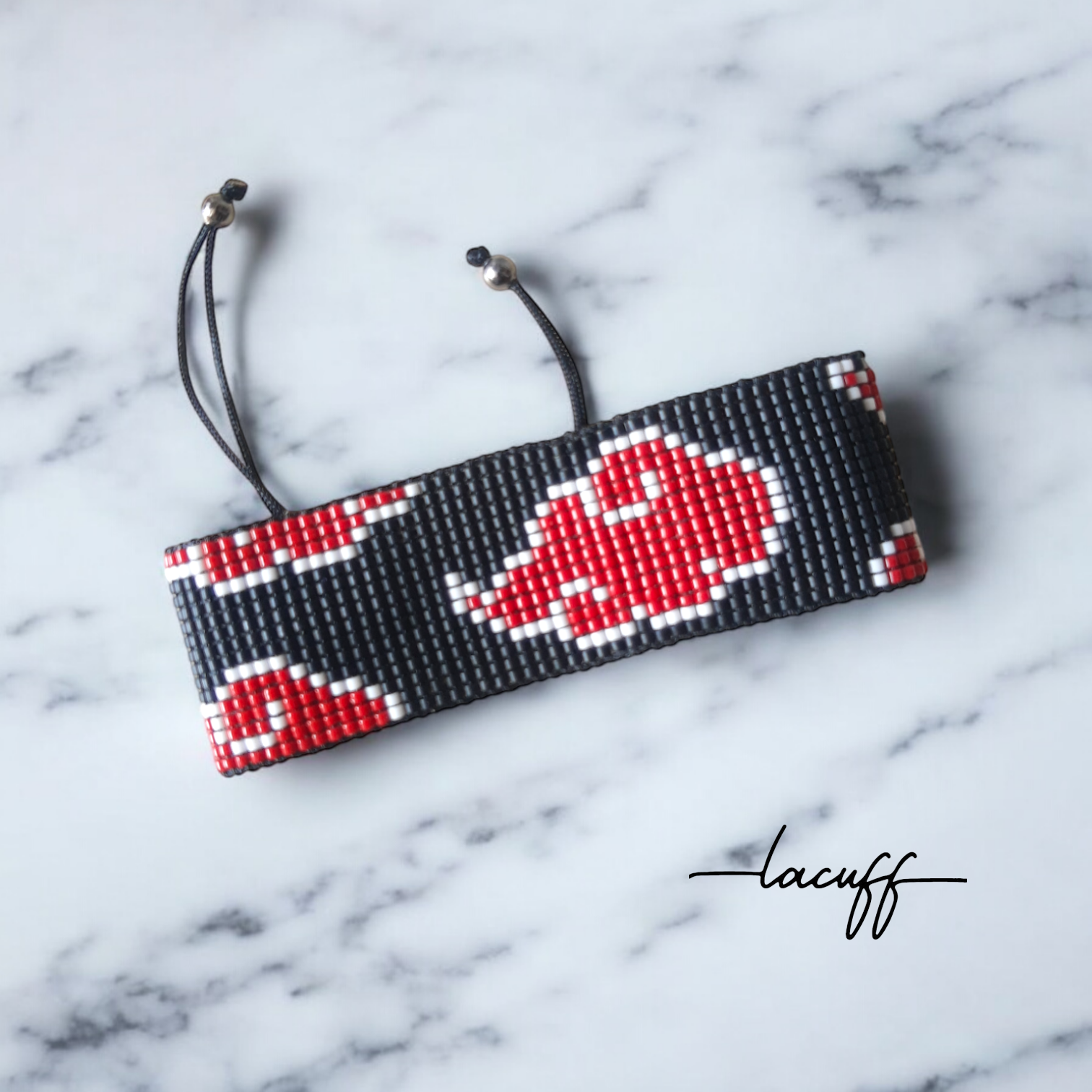 Pulsera Modo anime con un patron en forma de nube simbolo de la organización Akatsuki del anime Naruto, de 2,5cm de ancho con nudo corredizo para adaptarse al tamaño de la muñeca