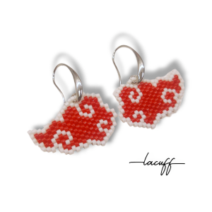 Aretes Modo Anime en forma de nube simbolo de la organización Akatsuki del anime Naruto en color rojo de 2cm de alto x 2,5cm de ancho