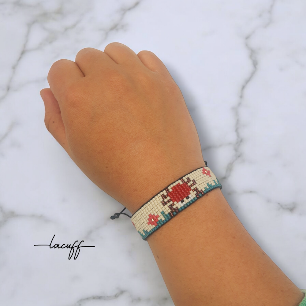 Pulsera Amor animal con la imagen de cangrejo de 1,5cm de ancho, con nudo corredizo para adaptarse al tamaño de la muñeca