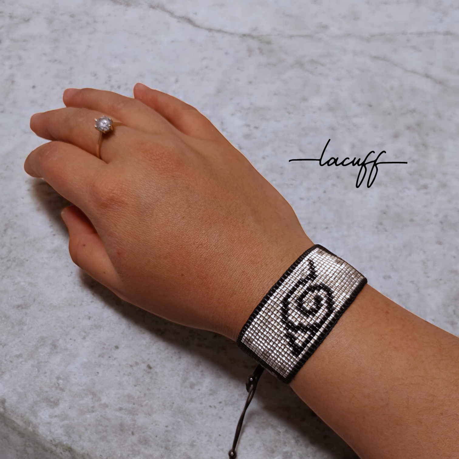Pulsera Modo anime con el simbolo de la aldea de la Hoja, de 2,5cm de ancho con nudo corredizo para adaptarse al tamaño de la muñeca