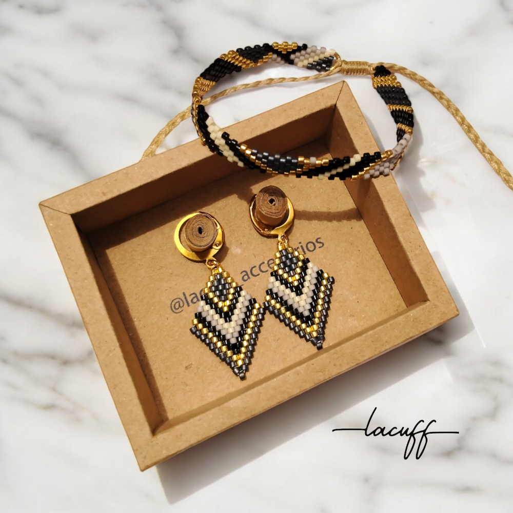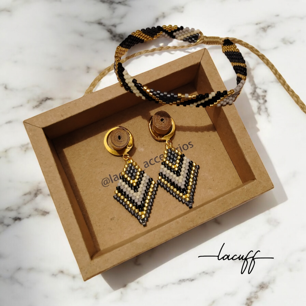Conjunto de Pulsera Slim y Aretes Small De Luxe en colores variados de 0,8cm de ancho x 14cm de largo la pulsera y 2cm de alto x 1,5cm de ancho los aretes