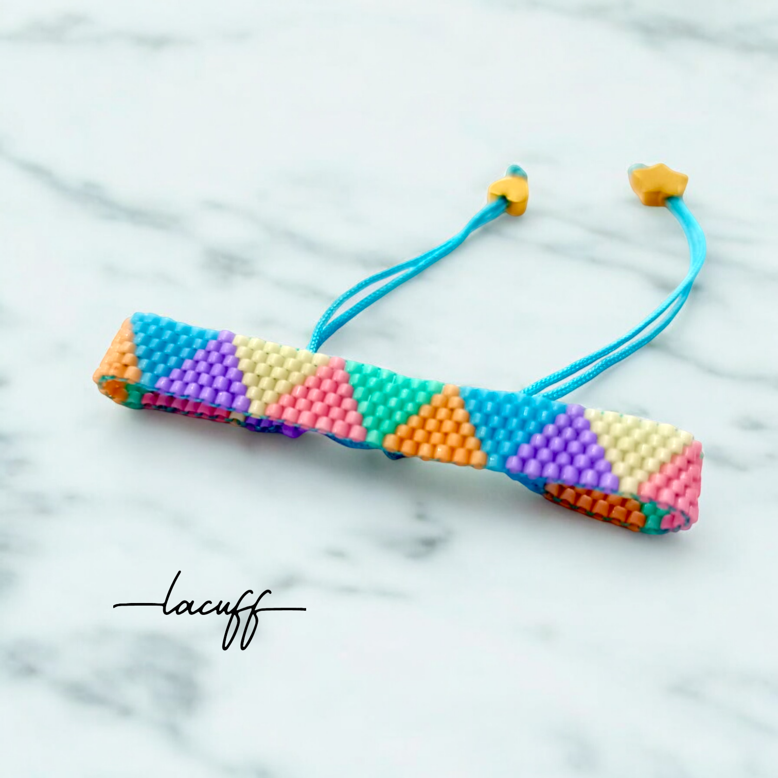 Pulsera Elemental Triángulos en colores variados de 0,8cm de ancho con nudo corredizo para adaptarse al tamaño de la muñeca